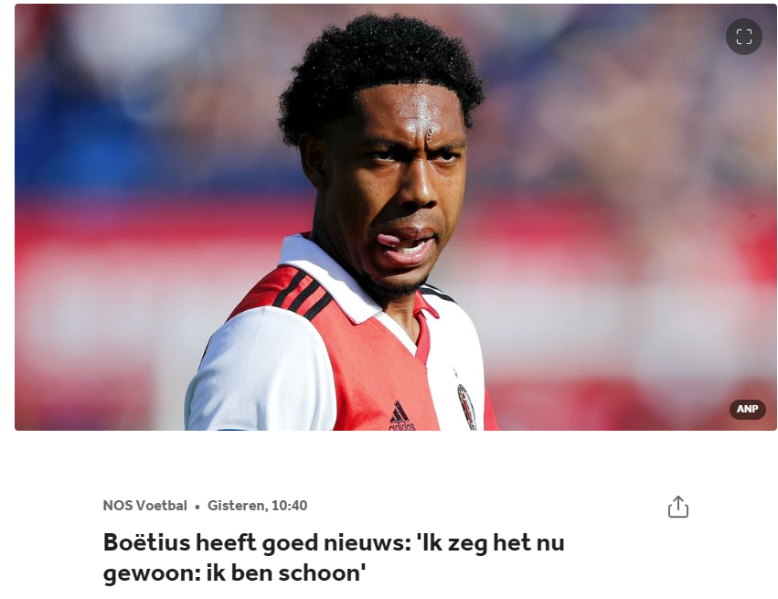 今年3月,荷兰边锋博埃蒂乌斯在个人社媒上自宣癌症扩散,将接受化疗。2022年9月,博埃蒂乌斯接受了睾丸癌的治疗,由于诊断及时,癌症处于早期,他只需接受手术即可。