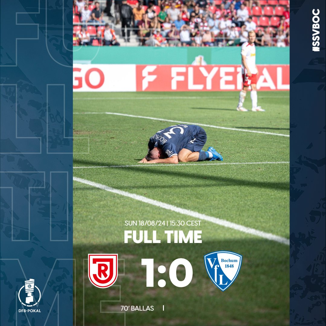 德国杯第一轮,波鸿0-1不敌雷根斯堡饮恨出局。