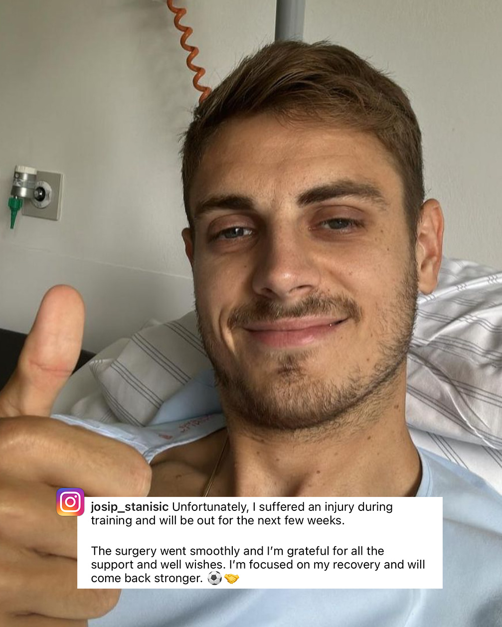 报道称斯塔尼希奇将伤缺至少六周,球员已于昨日完成手术开启康复进程。