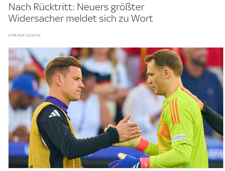 在诺伊尔退出国家队之后,特尔施特根也在社媒为这位多年来的队友送上了祝福:“祝贺你在德国队的职业生涯,永远的世界冠军和德国足球的传奇。”