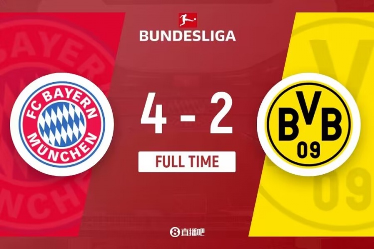 下半场补时4分钟,拜仁4-2多特。