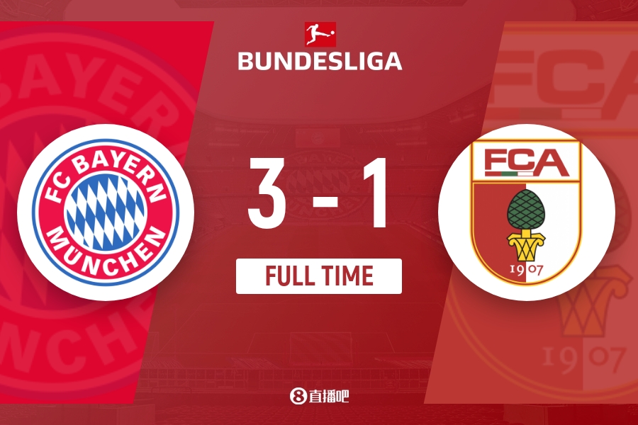 下半场伤停补时4分钟,全场比赛结束,最终拜仁3-1奥格斯堡。