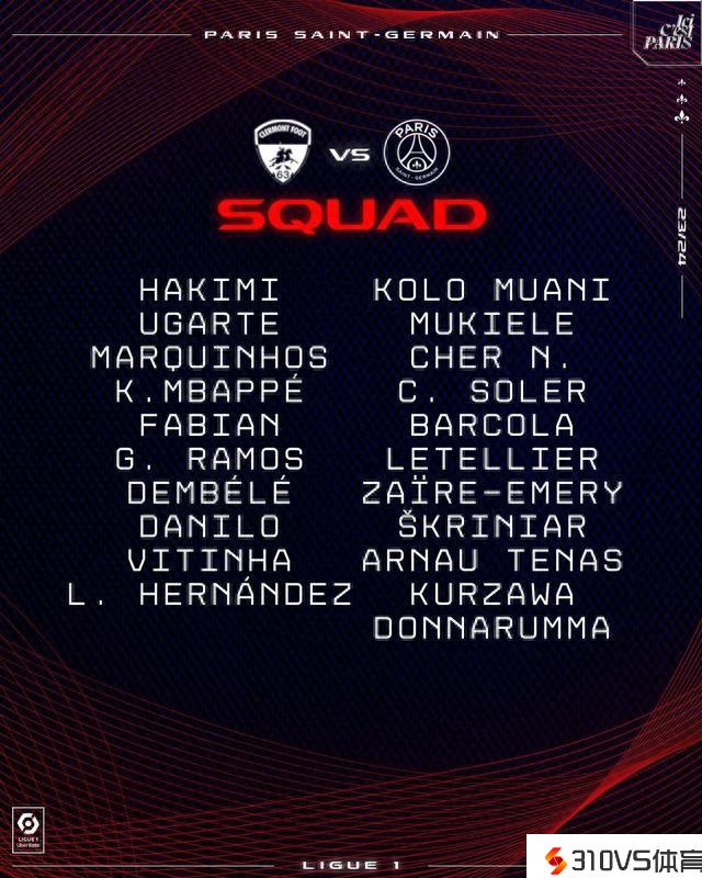 巴黎联赛大名单:姆巴佩、登贝莱领衔,纳瓦斯列席