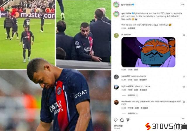 巴黎不敌纽卡,姆巴佩被拍到是第一个分开球场的巴黎球员