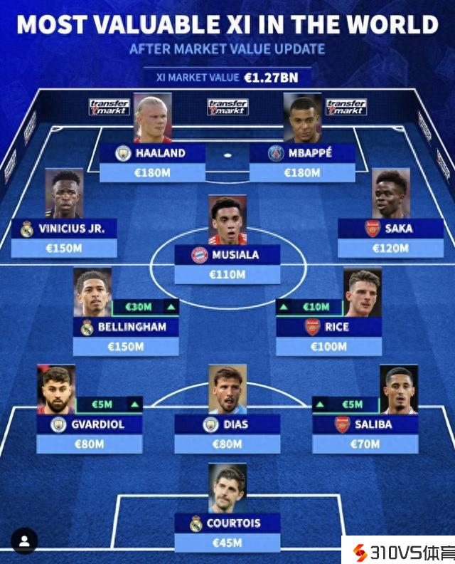 世界足坛最贵阵:姆巴佩&哈兰德领衔总价12.7亿欧,皇枪城各3人