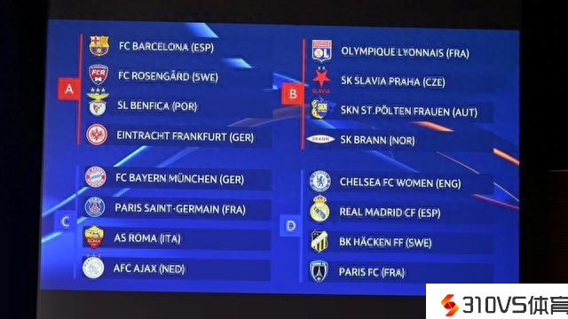 女足欧冠小组赛抽签:拜仁巴黎造死亡之组,切尔西遭遇皇马