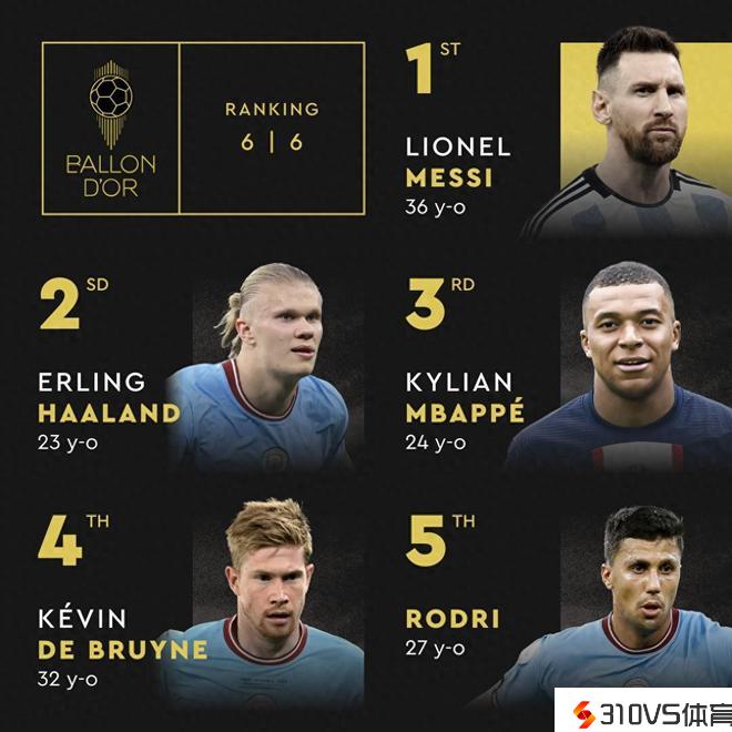 金球奖完整排名:哈兰德、姆巴佩分列二三,德布劳内第四
