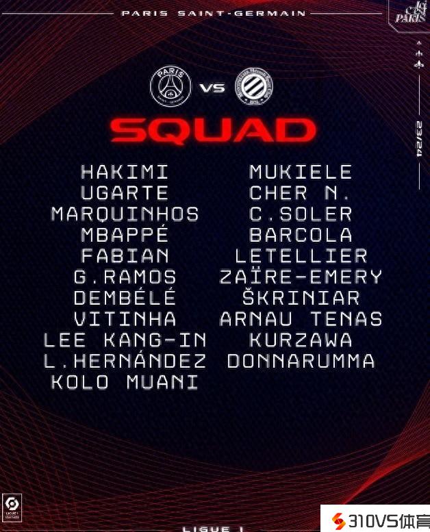 巴黎联赛大名单:姆巴佩领衔,马尔基尼奥斯回归,阿森西奥列席