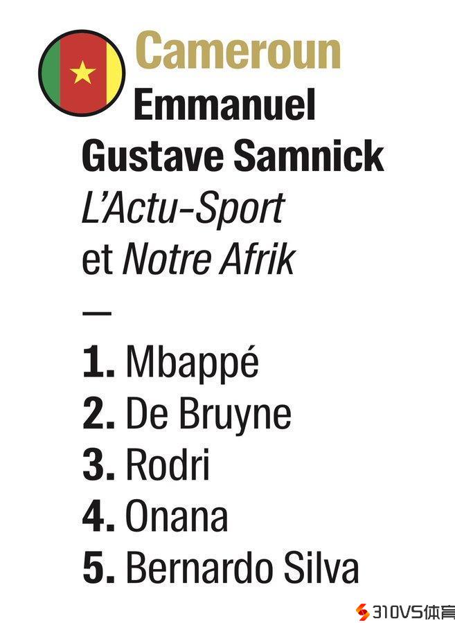 喀麦隆记者金球投票:姆巴佩第一,奥纳纳第四,前五无梅西