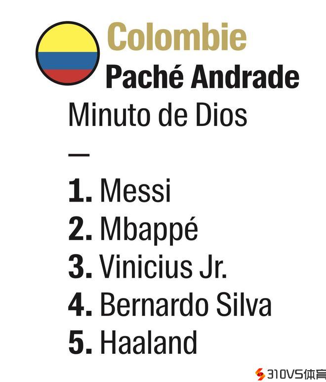 哥伦比亚记者金球投票:1-梅西 2-姆巴佩 3-维尼 4-B席 5-哈兰德