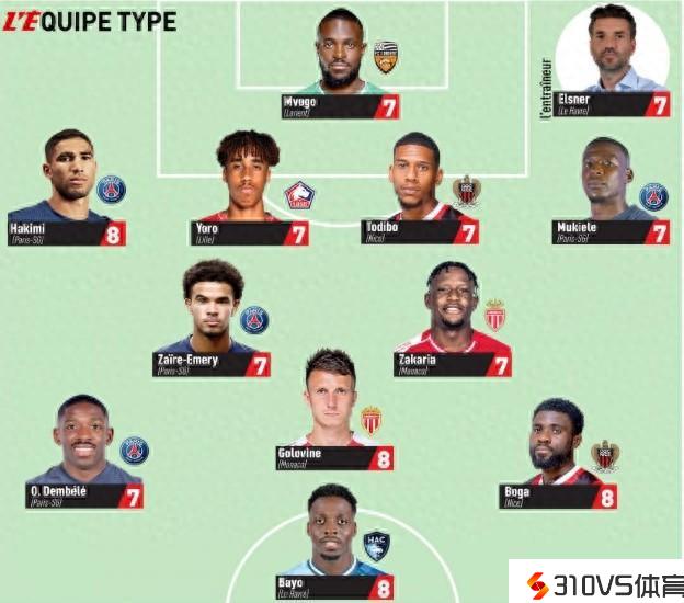 队报本轮法甲最佳阵:登贝莱领衔巴黎4人中选 尼斯&摩纳哥各2人