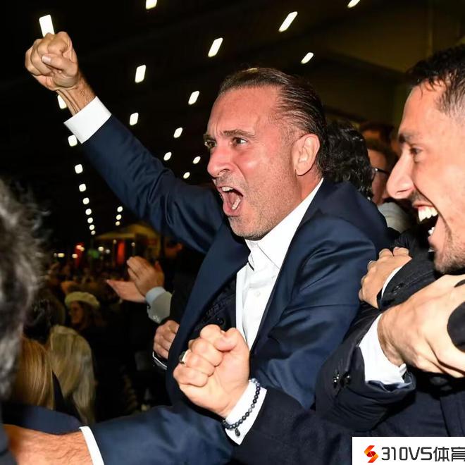 米兰老板卡尔迪纳莱在圣西罗观战,2-1获胜后挥拳热情庆贺