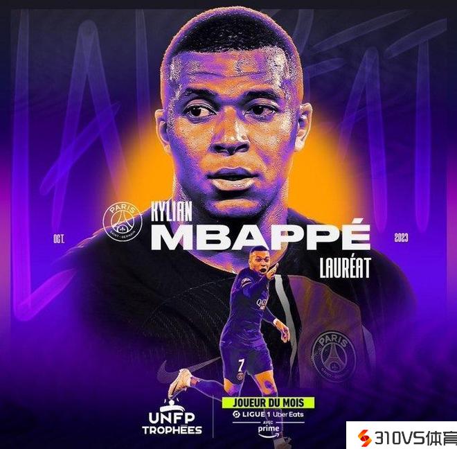 法甲官方宣布,巴黎圣日耳曼前锋姆巴佩取得法国职业球员工会(UNFP)10月最佳球员。这是姆巴佩第10次取得法甲月最佳,成为历史上首位达成这一成就的球员。