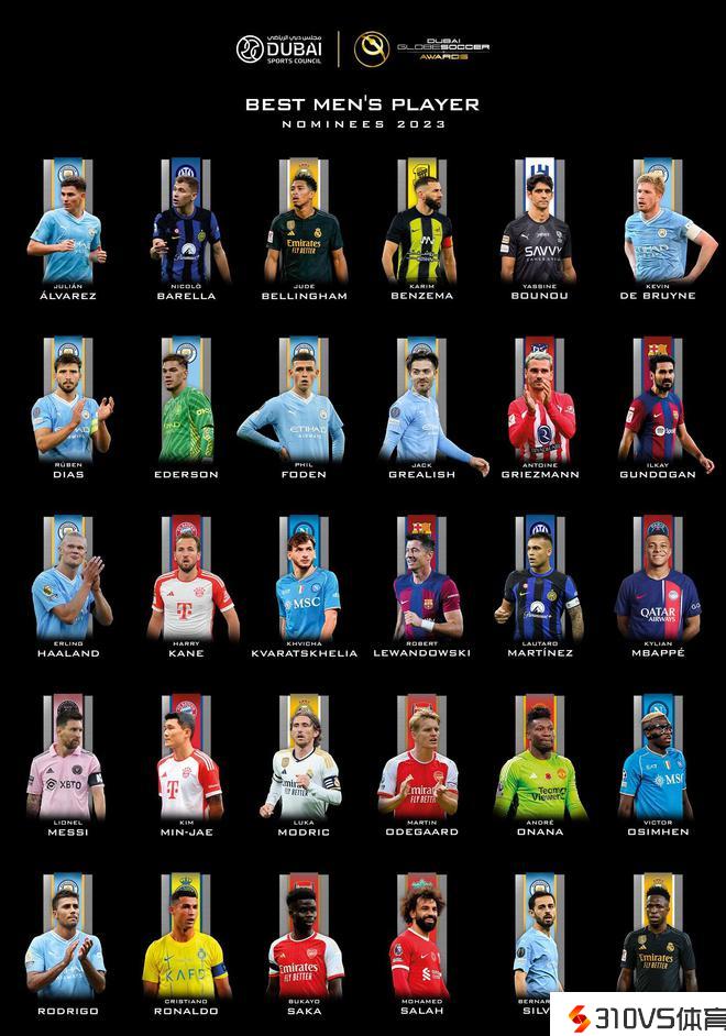 环球足球奖最佳男球员候选:梅西、C罗、哈兰德、姆巴佩在列