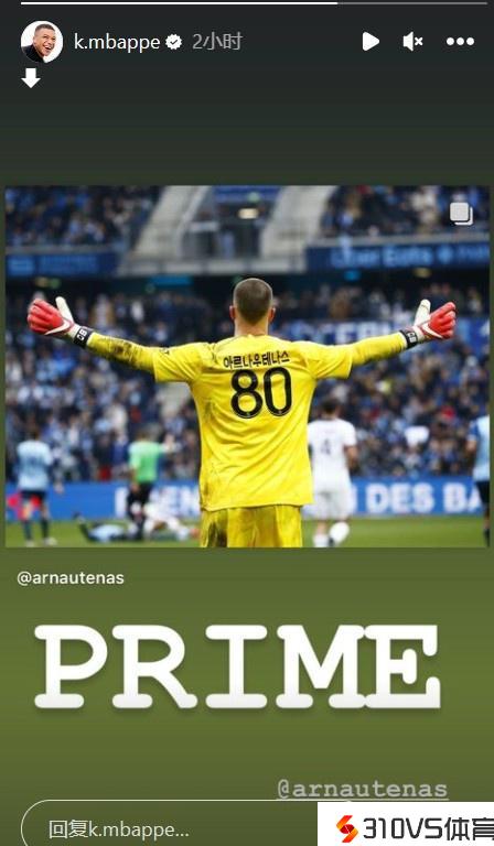 姆总的认可!姆巴佩更新社媒称赞单场7次扑救的特纳斯:一流表现