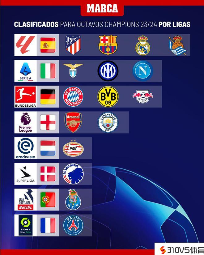 欧冠16强全部出炉,英超2队垫底,西甲4队小组第1,法甲独苗