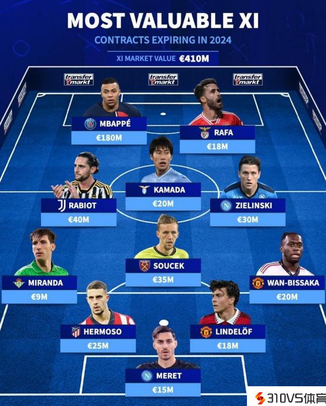 德转列明年合同年最贵阵:姆巴佩领衔,拉比奥特&万比萨卡在列