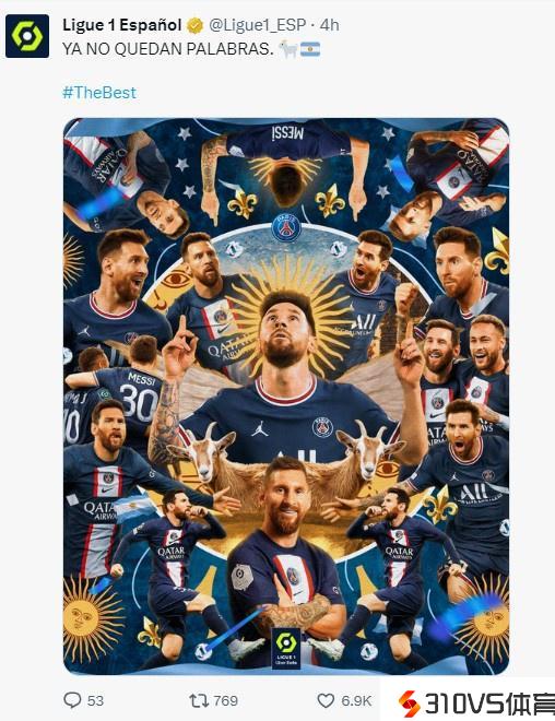 梅西第八次获FIFA最佳,法甲官推祝贺:已无法用言语描画