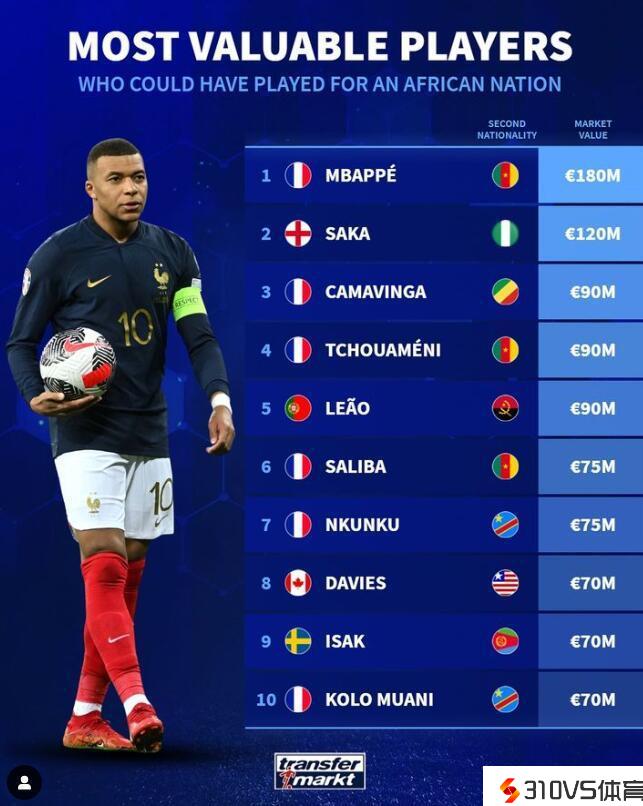 假设他们参与非洲杯?第二国籍是非洲国度球员:姆巴佩领衔