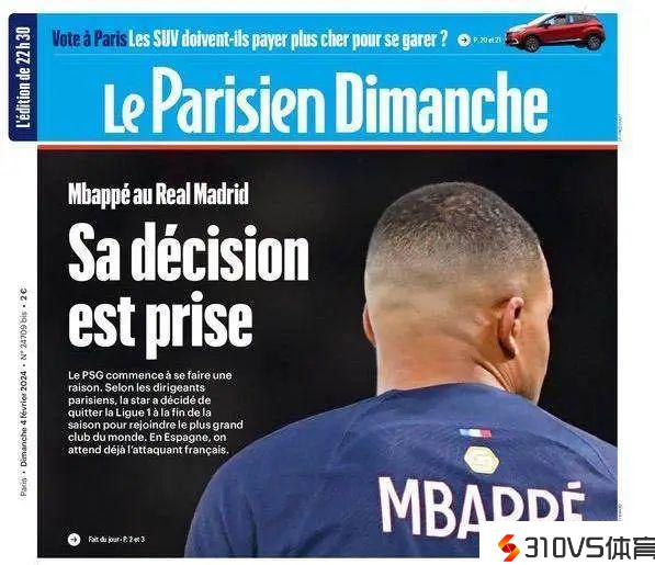 但2月4日的《巴黎人报》话锋急转,很清楚失掉了来自巴黎高层的信号。该报说:“假设一定地说事情已成定局,那是不准确的,姆巴佩还没有分开巴黎圣日耳曼,也没有和皇马签约。但不可防止的事情最终会发作:法国足球最大明星将在下个赛季加盟世界上最大的俱乐部。”