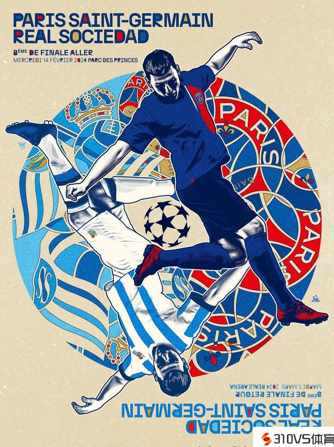 巴黎晒漫画主题海报,预热欧冠1/8决赛首回合对阵皇家社会