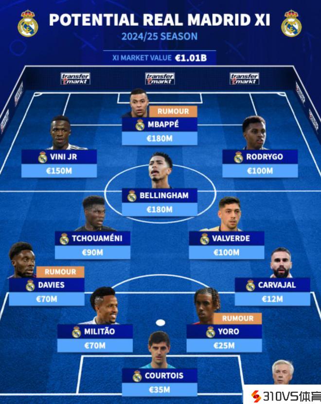 德转列皇马潜在11人阵:姆巴佩领衔5位亿元先生阿方索左后卫
