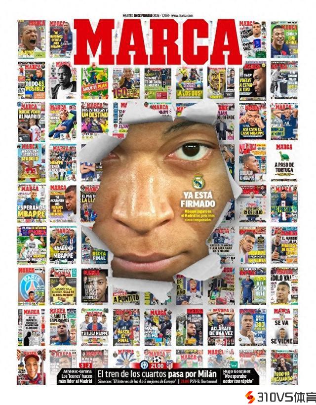 全剧终马卡头版:姆巴佩已和皇马签约,合同5年