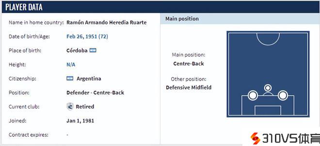 卡乔·埃雷迪亚(Cacho Heredia)。74年世界杯阿根廷主力后卫,77年从马竞加盟,效能球队两个半赛季,出场24次打进1球。80年一月回到阿根廷加盟萨米恩托。