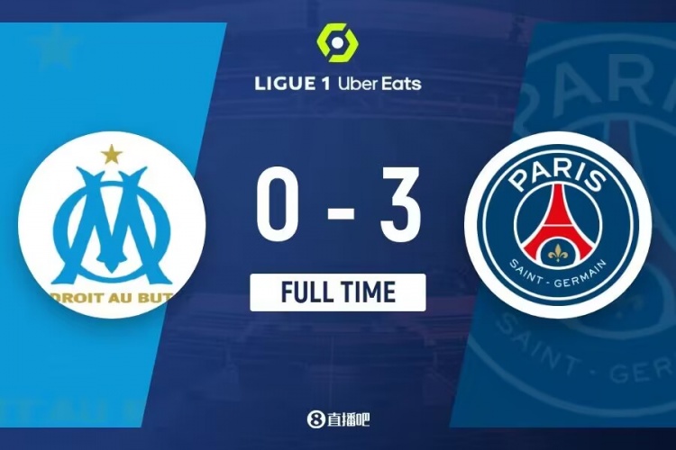 下半场伤停补时2分钟,全场比赛结束,最终巴黎3-0马赛。