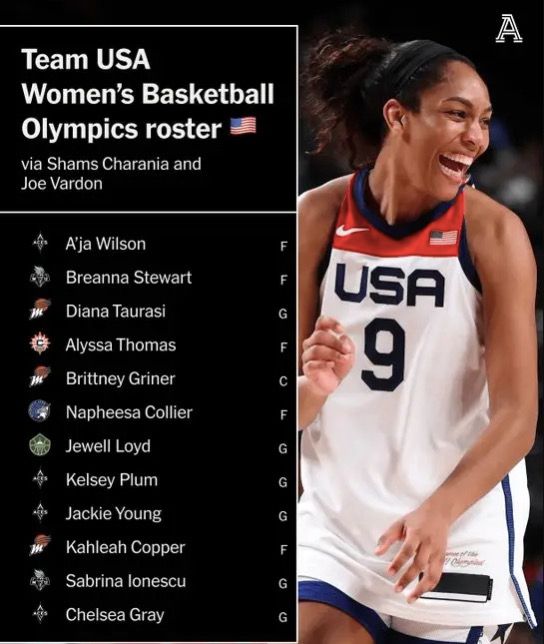 此外,美国女篮阵容还有格雷、斯图尔特、格里娜、普拉姆、约内斯库、劳埃德、托马斯、库珀、杨和科利尔,每个球员都是WNBA球队的核心。在奥运会开始之前,美国女篮也是进行了2场热身赛,第一场是与WNBA全明星队,可惜109-117输掉了比赛;之后对阵德国女篮,84-57轻松取胜,威尔逊拿到19分14篮板。