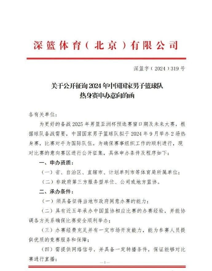 北京时间7月30日讯,据媒体人付政浩报道,中国男篮将在九月进行两场热身赛。