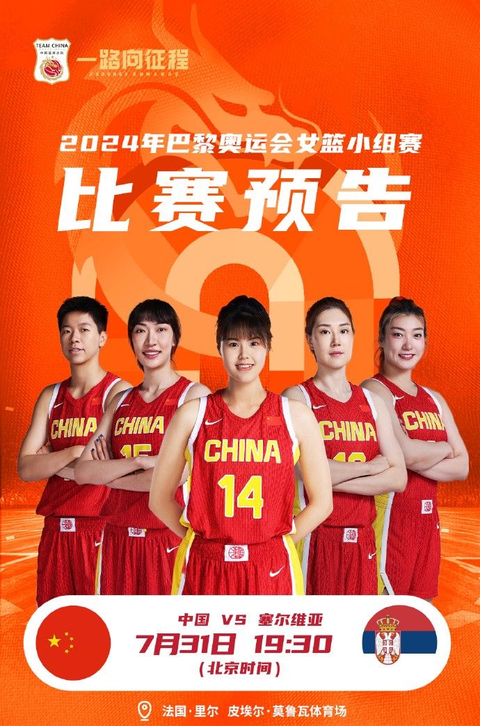 北京时间今晚19点30分,奥运女篮小组赛,中国女篮对阵塞尔维亚。