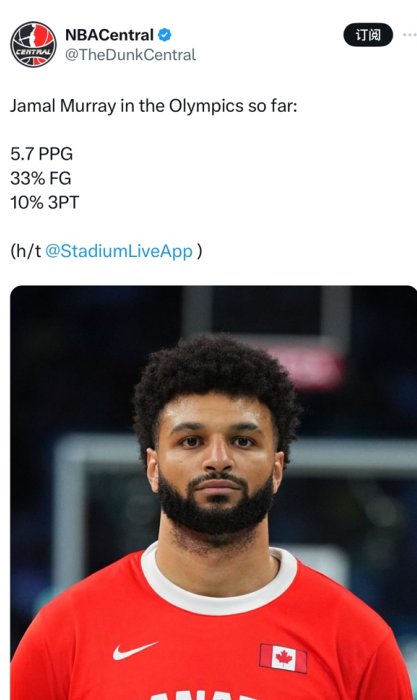 😑美媒晒加拿大球星贾马尔-穆雷奥运会数据:得分、命中率惨不忍睹