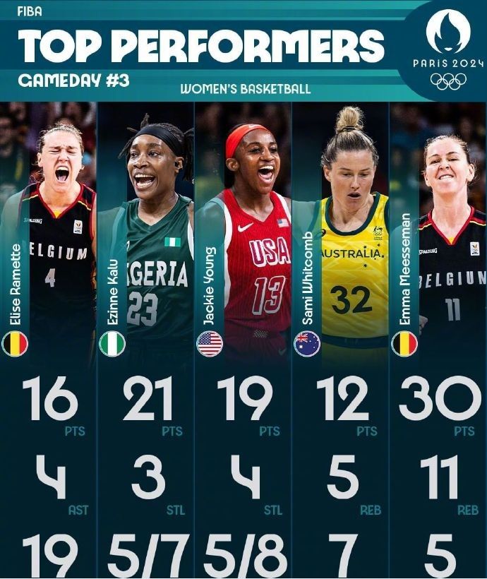 🌟FIBA官方评女篮小组赛第三轮最佳球员:卡卢率尼日利亚创造历史