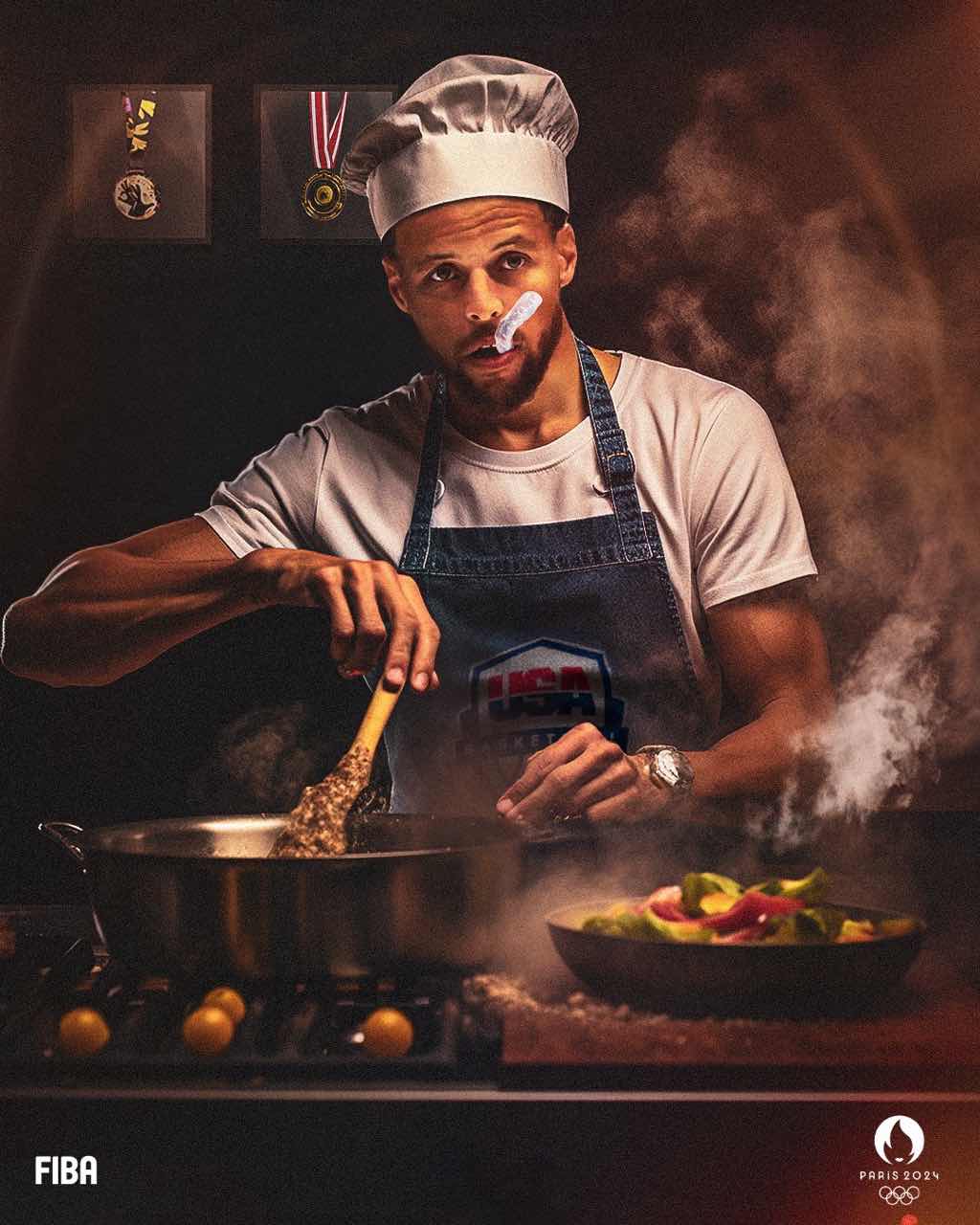 🌟FIBA官方发布“厨师”库里煮菜P图并配文:这是一次跨时代的表现