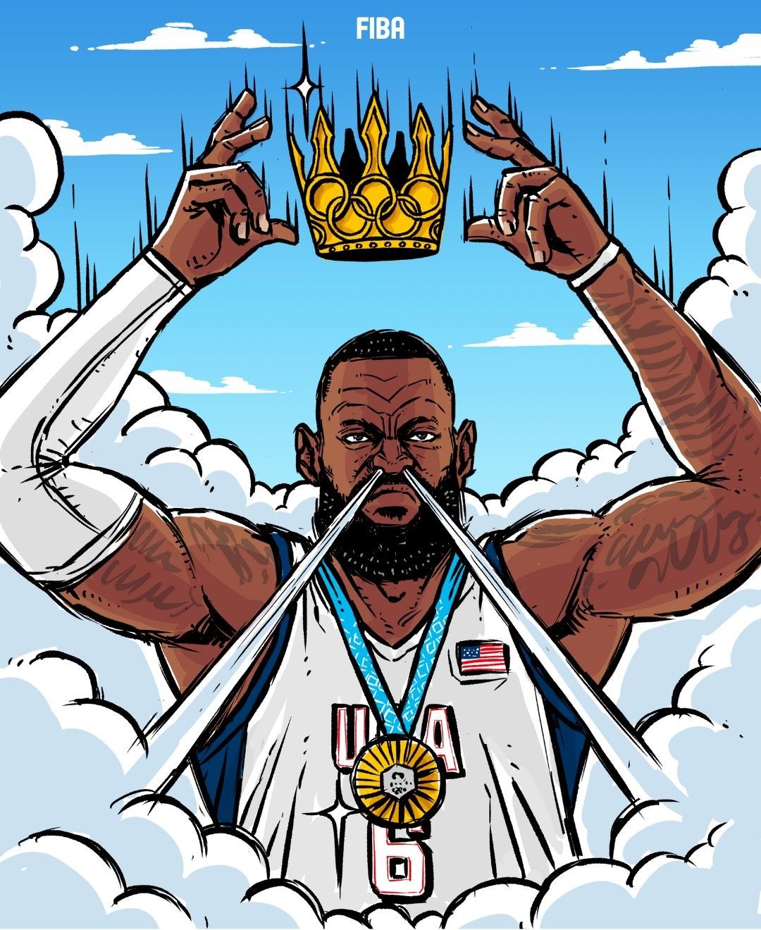👑FIBA官方制作海报:詹姆斯戴上奥运皇冠