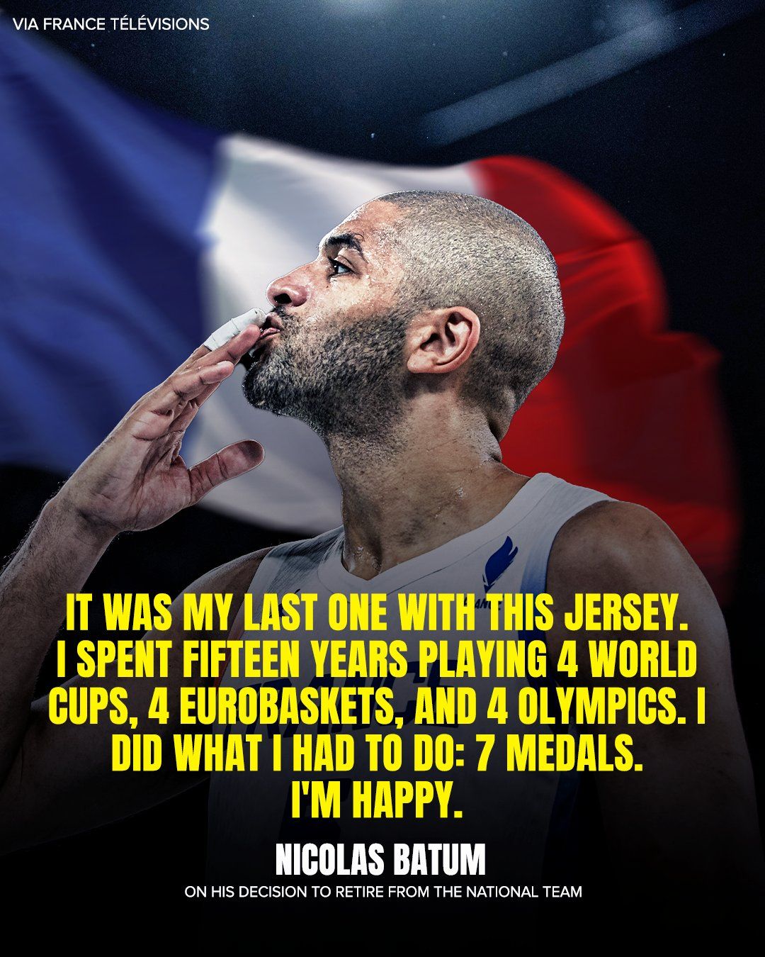 巴图姆说道:“这是我身披国家队战袍的最后一场比赛了。过去15年间,我为国家队出战了4届世界杯,4届欧洲杯和4届奥运会。我也实现了自己的梦想:7块奖牌。我很满意。”