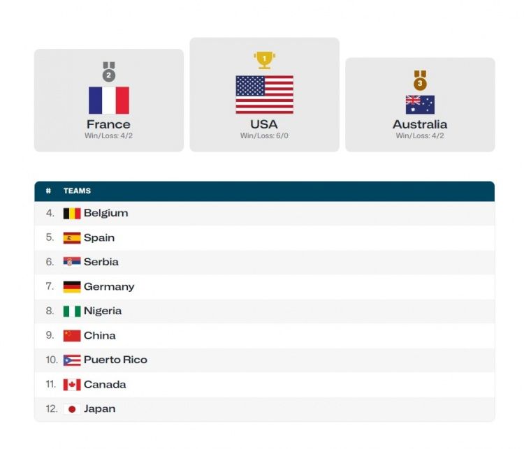 🌟巴黎奥运会女篮最终排名:美国、法国、澳大利亚金银铜 中国第九