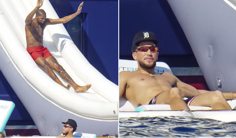 😄享受假期!杜兰特和布克在圣特罗佩游玩 前者玩滑滑梯 后者晒日光浴