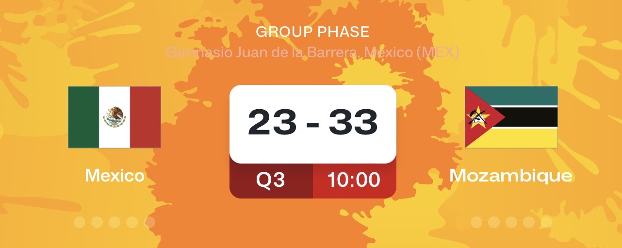 次节,实力占优的莫桑比克女篮开始发力,在经过拉锯之后将分差拉开至两位数,墨西哥这边则是连续不中,命中率奇低,最后四分钟仅得2分。