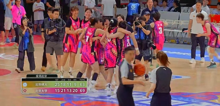 末节决战,毛婉如先中三分,李青阳反击得手再度将分差拉开到两位数,北大3分钟颗粒无收,伍湘琳强投打成2+1艰难破荒,王家绘内外开花连得5分将分差迫近到只剩2分,张笑两罚中一,王滢三分精准制导带队扳平比分,双方争夺陷入白热化,王家绘再中三分完成反超,李青阳三分续命,王家绘无解再度上篮得手,北师大连续出现失误,最终,北京大学依靠末节的发挥69-63逆转北京师大,夺得冠军!