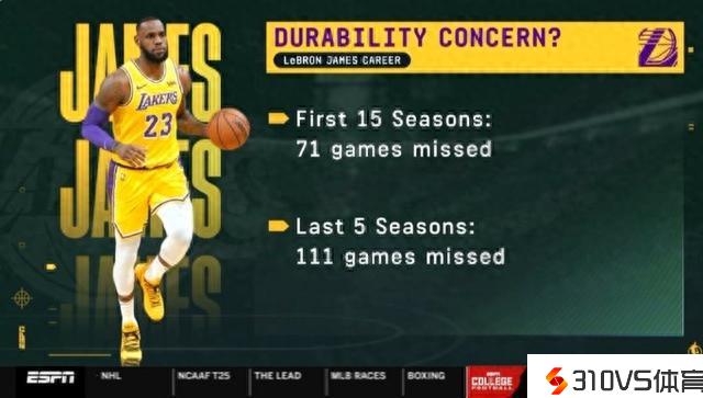 詹姆斯生涯前15赛季列席71场竞赛 近5赛季列席111场