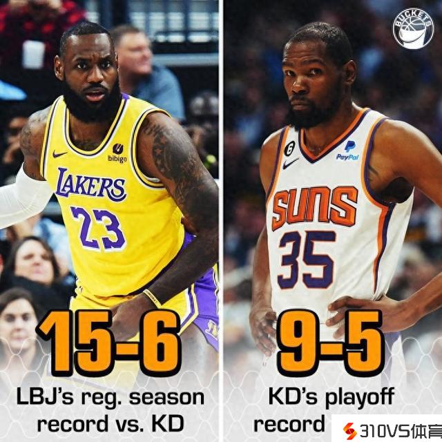 詹姆斯KD交手战绩:惯例赛詹姆斯15-6占优 季后赛KD9-5占优