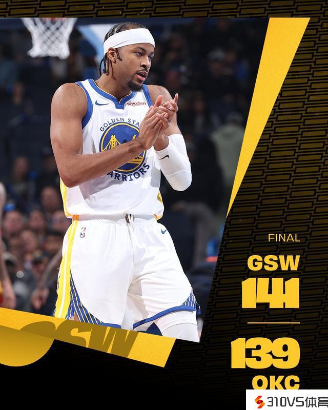 格林命中2+1,克莱轰进三分球,胆小鬼队追平比分。杰伦威廉姆斯连投带罚失掉3分,霍姆格伦封盖德雷蒙德格林,后者肘到切特面部,但是裁判认定为普通犯规。竞赛逐渐进入白热化阶段,库里拉杆上篮取分,克莱抢断对手随后被犯规,杰伦威廉姆斯第6次犯规被罚下。克莱2罚全中,胆小鬼反超比分,OKC央求暂停。霍姆格伦冲击篮下被格林犯规,胆小鬼队应战判罚失败。霍姆格伦2罚全中,佩顿上篮得分。多尔特2罚1中,距离终场仅剩16秒,两队战成139平,科尔央求暂停。