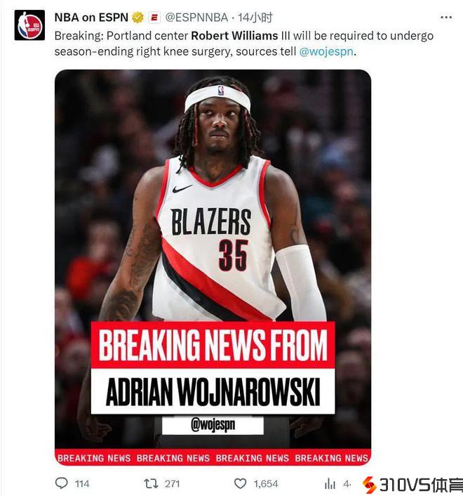 在灰熊和开拓者的竞赛中,罗威防卫时受伤,随后退场。事先没人能想到如此严重,罗威直接手术报销。他本赛季替开拓者出战6场惯例赛,场均上场19.8分钟,失掉6.8分6.3篮板0.8助攻1.2抢断1.2盖帽,投篮命中率65.4%。
