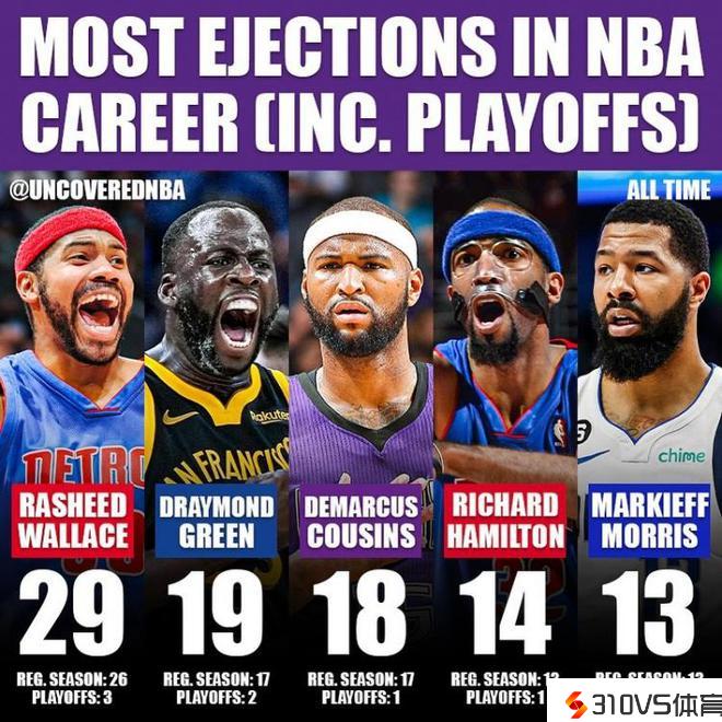 美媒Uncoverednba昔日统计了NBA历史被驱逐次数最多的球员排名,昨日再次被驱逐的追梦排名第二,概略如下: