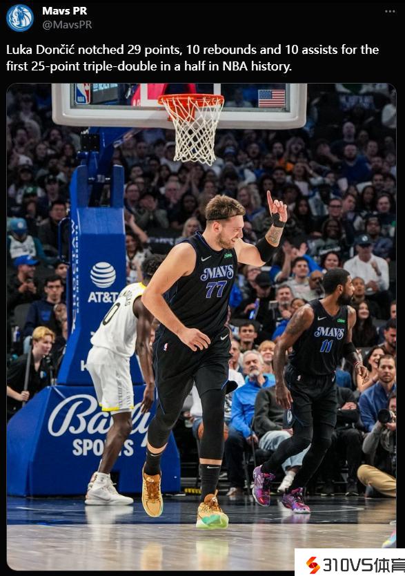 恐惧如斯!东契奇半场29+10+10 历史第一个25+半场三双