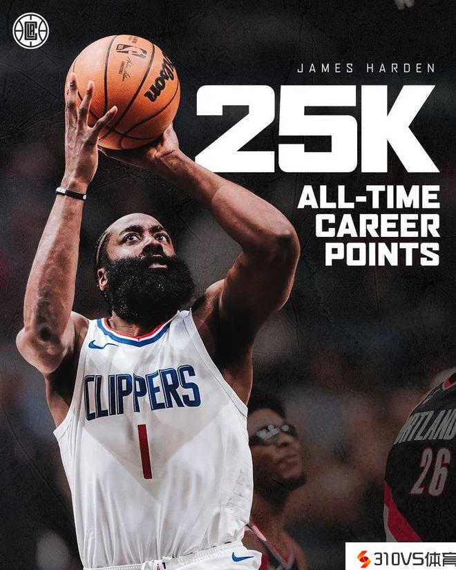 25000分里程碑!哈登轰28分7板15助4帽:现役总得分仅少于詹杜