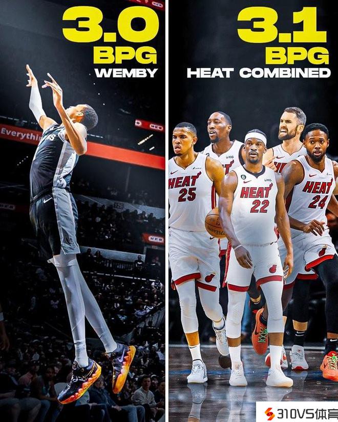 文班亚马本季至今场均3帽 简直与热火全队场均盖帽数持平