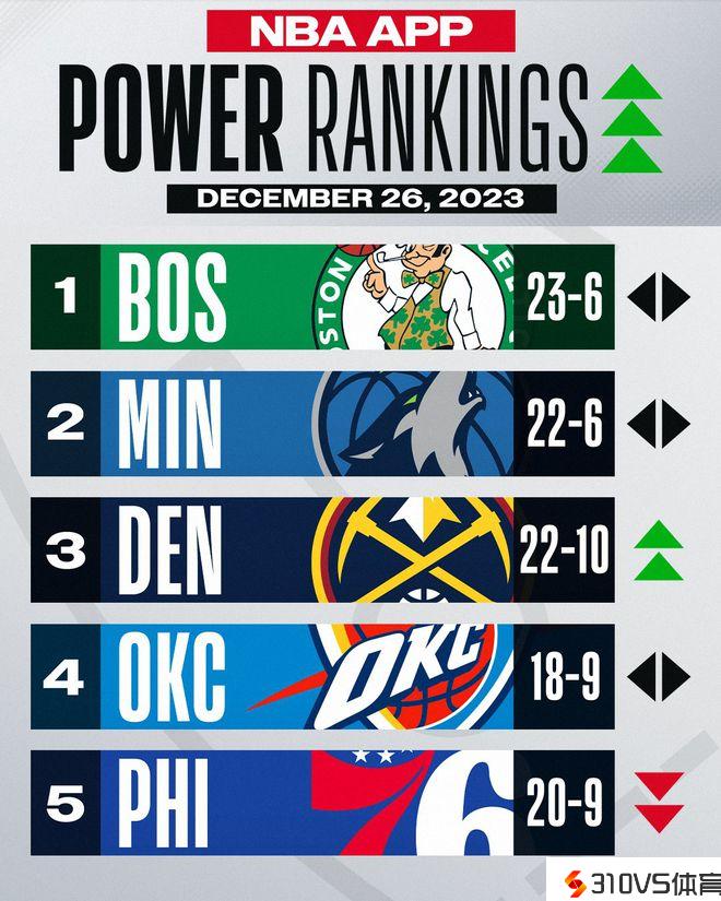NBA最新实力榜:掘金5连胜升至第3,湖人下滑5位跌出前15